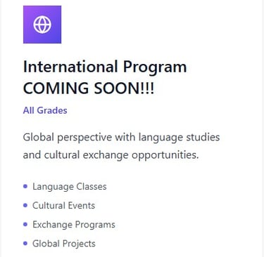 Our programs are designed to challenge and inspire students at every level. We combine rigorous academics with hands-on learning experiences to ensure students are well-prepared for future success.